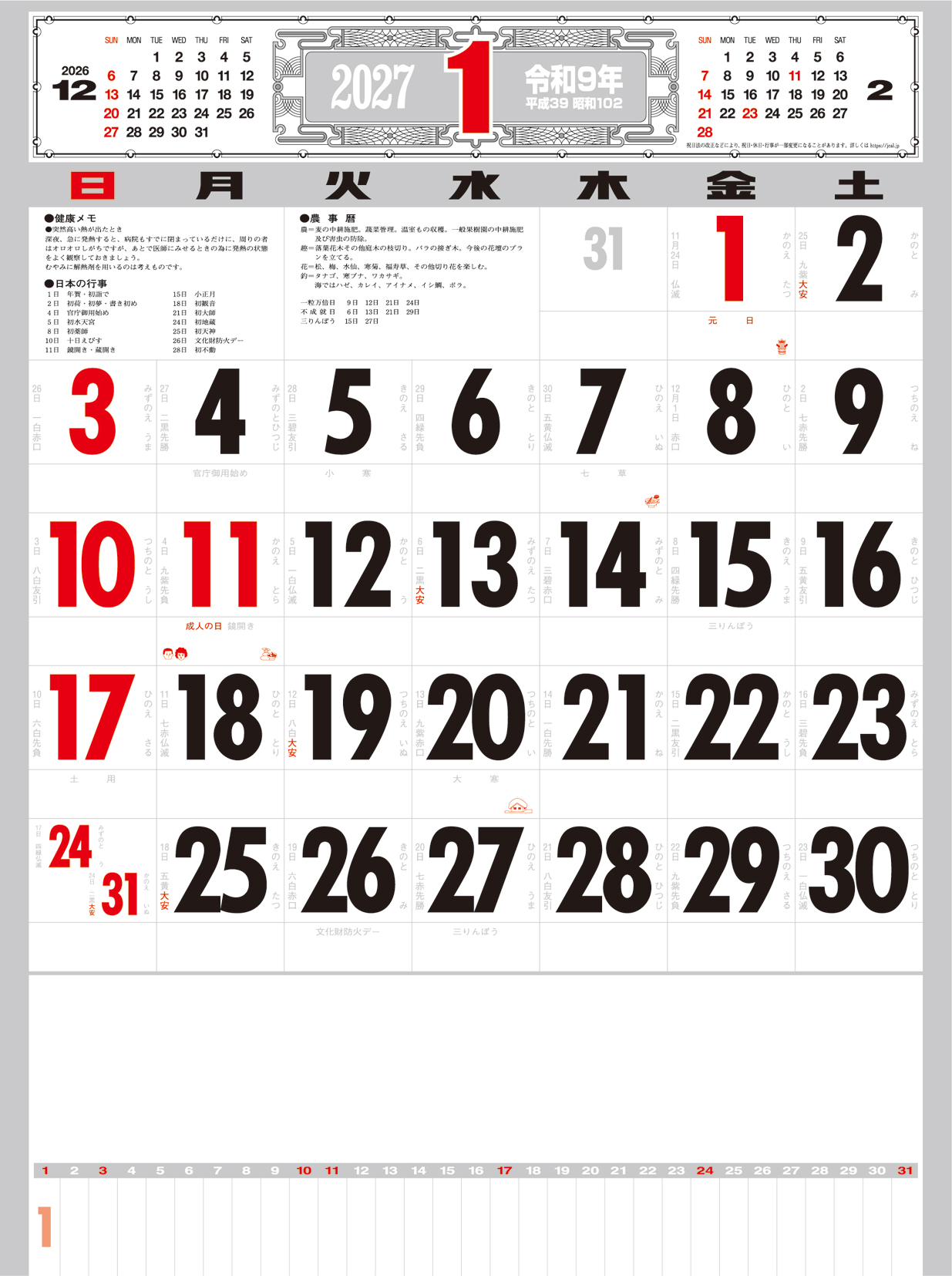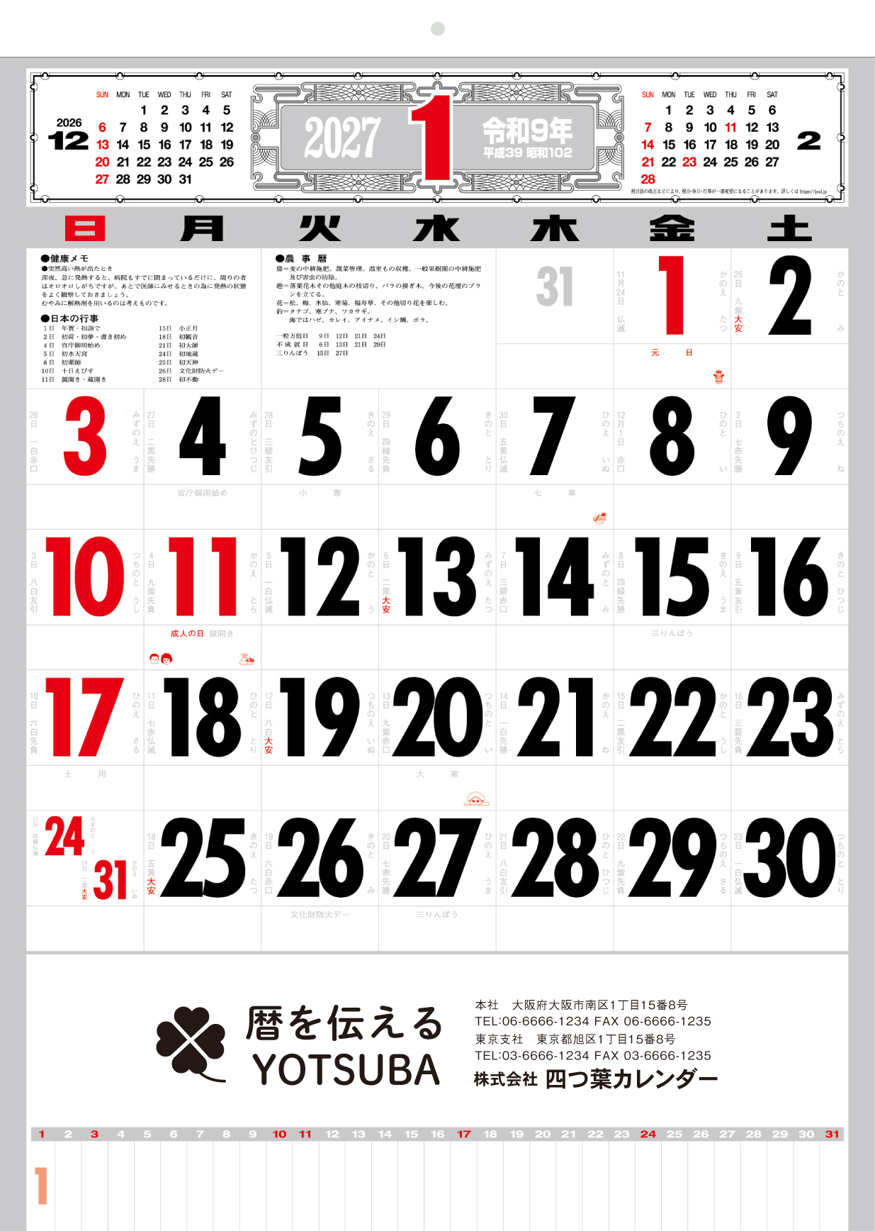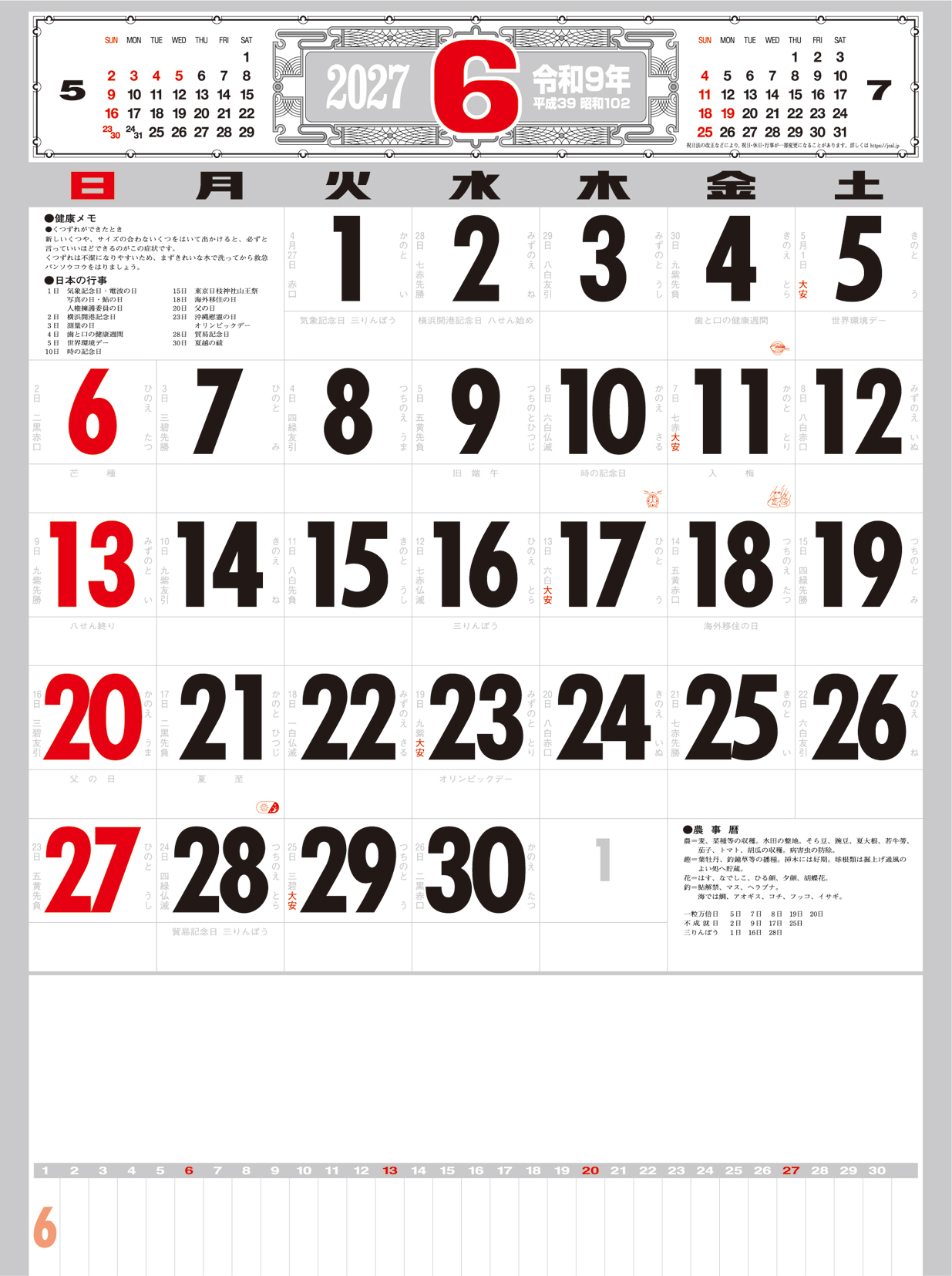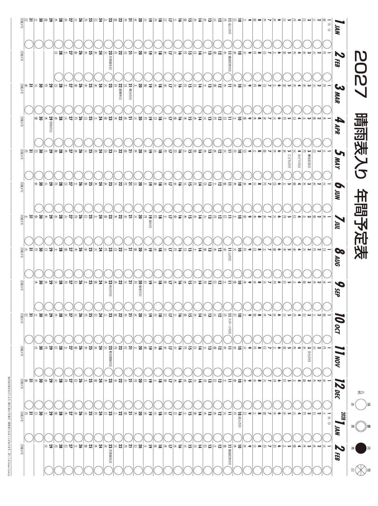 厚口文字月表 晴雨表入り・年間予定表付