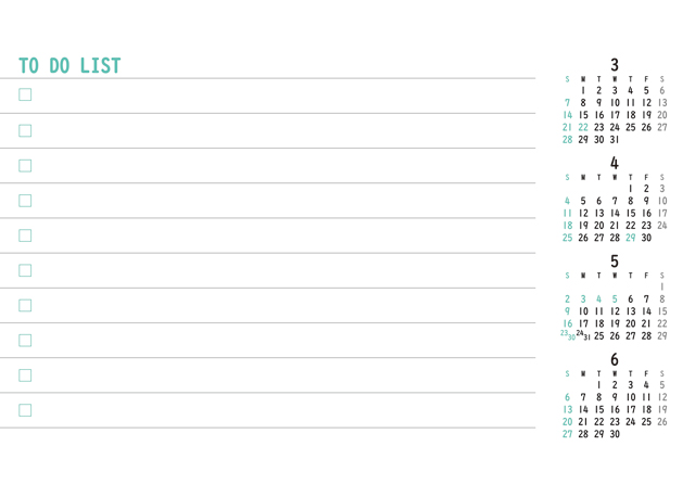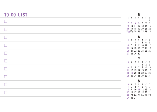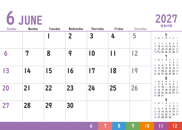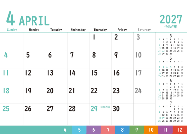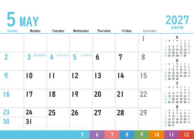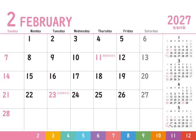 5ヶ月分のカレンダーを掲載