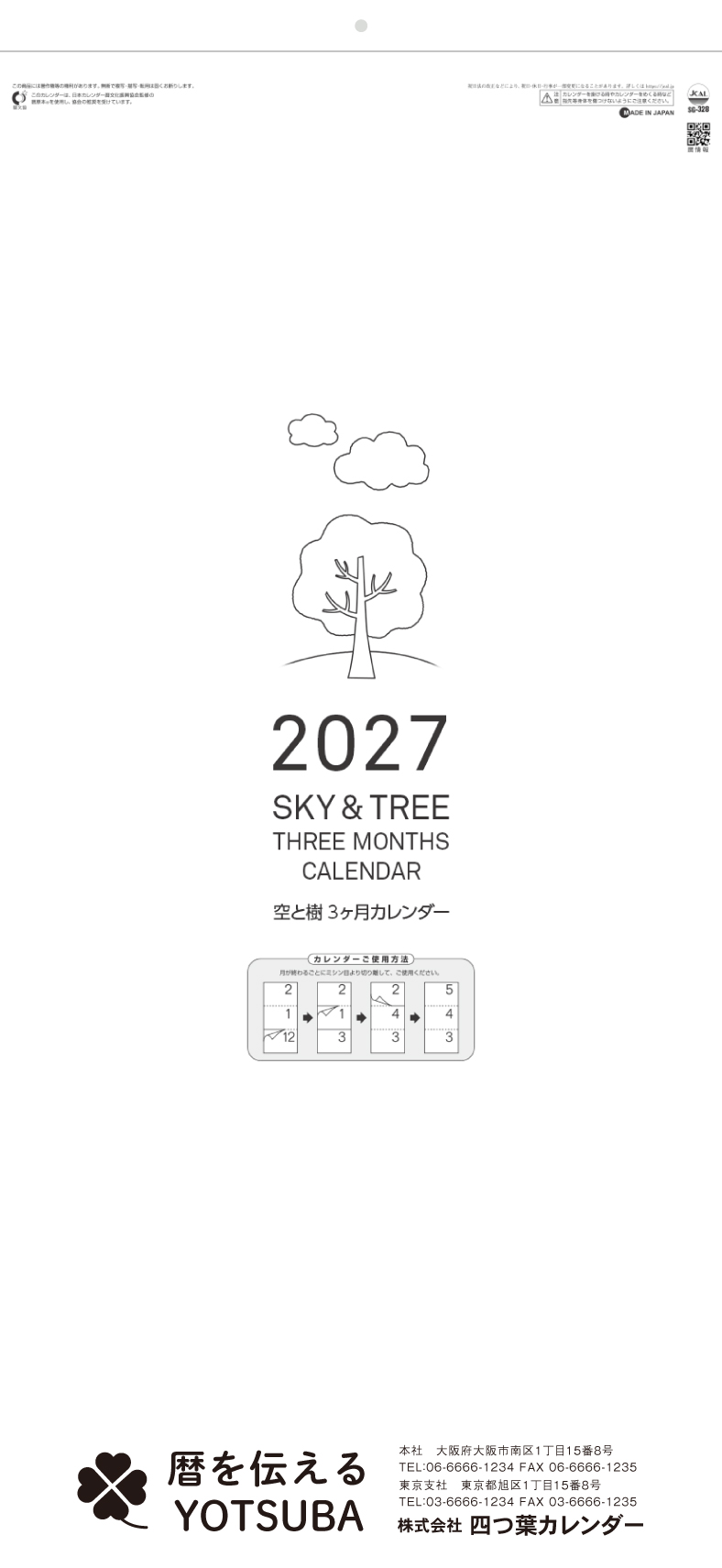空と樹3ヶ月カレンダー(スリーマンス・ミシン目入り)
