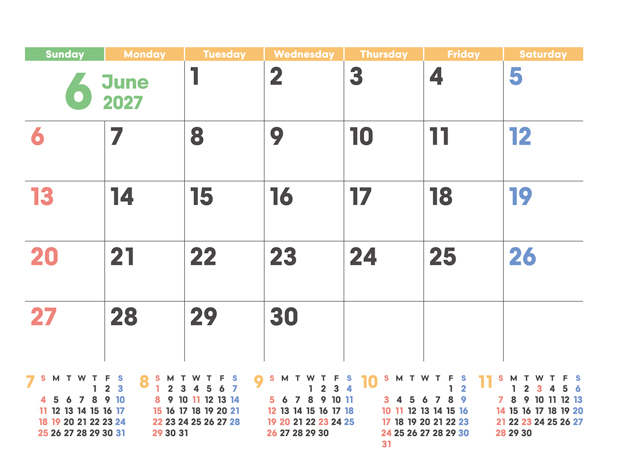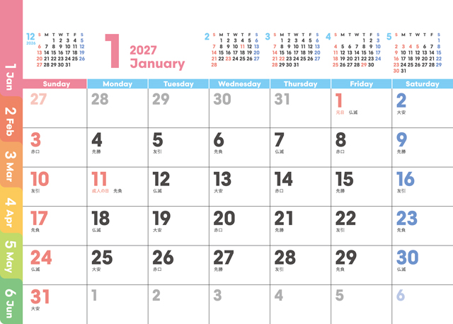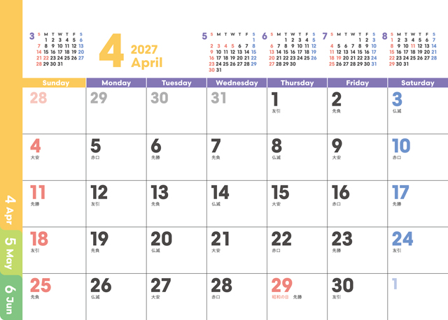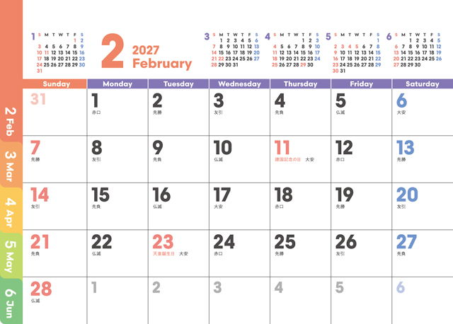 スケジュール管理に最適な6ヶ月表記