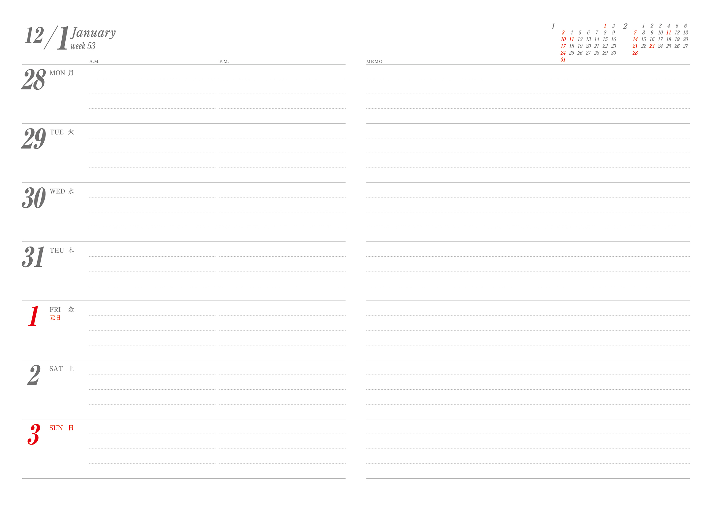 〈見開き1週間タイプ〉