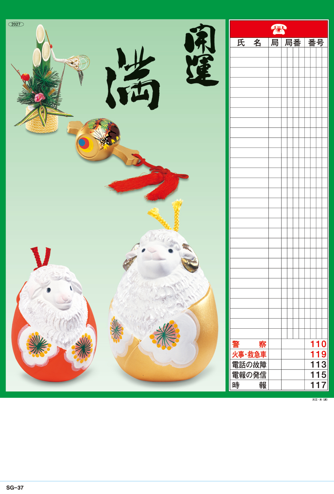 電話表入 民芸・未〈満〉