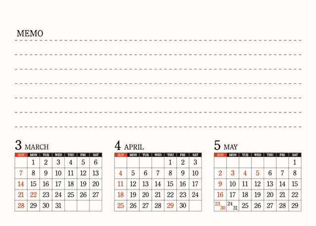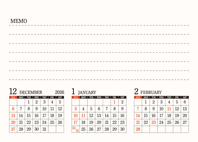 〈裏面にはメモと前後月を掲載〉