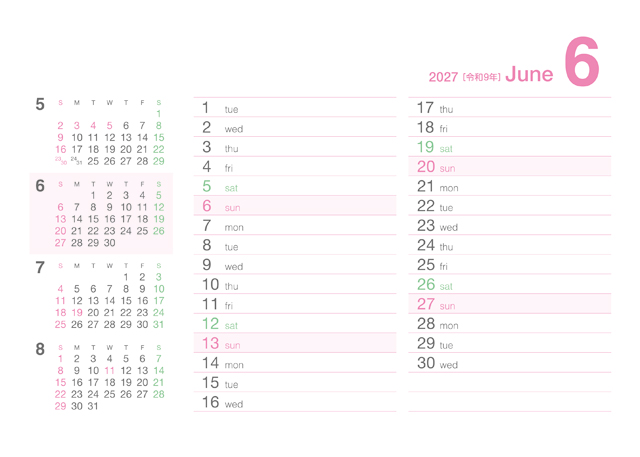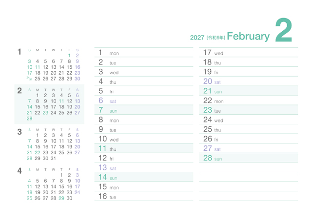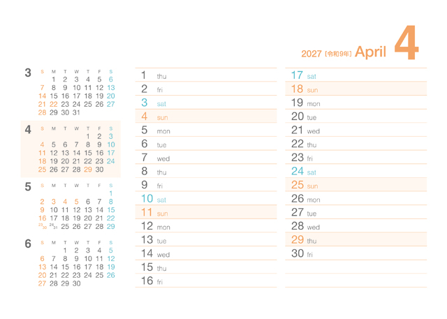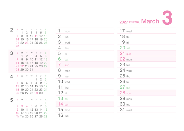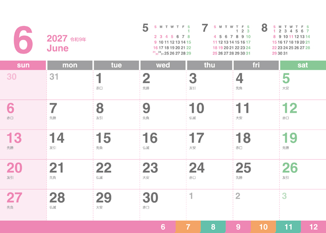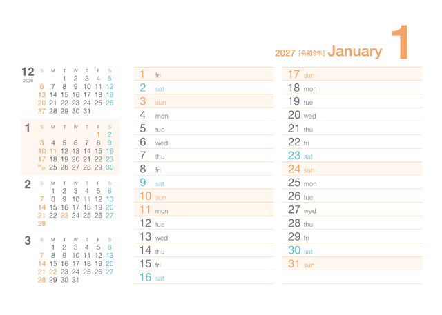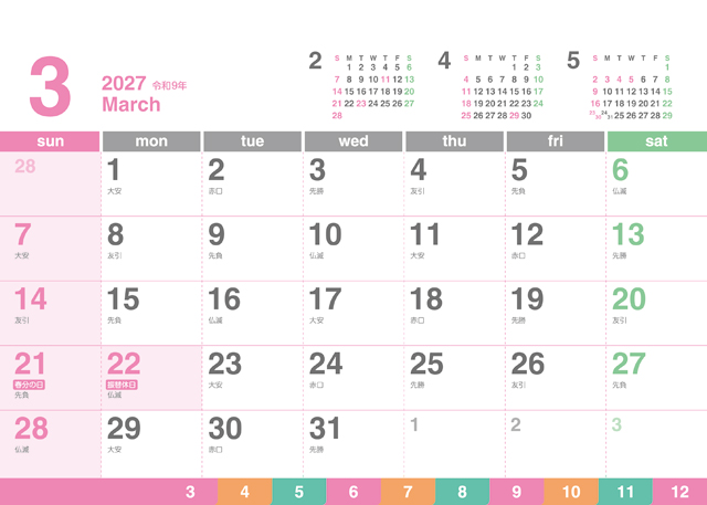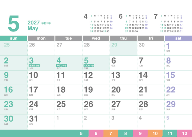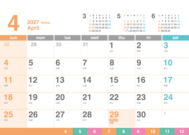 クリアカラーカレンダー